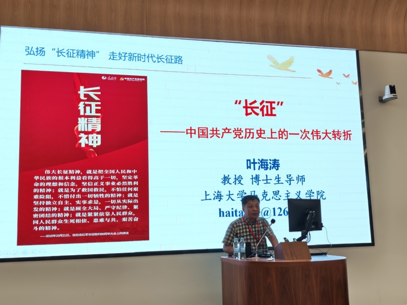 2025年10月17日上午,上海大学马克思主义学院主持工作副院长、上海大学马克思主义研究院执行院长、博士生导师叶海涛教授应邀来到我校,在崇明校区国交楼312大师讲堂为广大师生带来一场题为“长征:中国共产党历史上的伟大转折”的专题讲座。我校马克思主义学院中国近现代史纲要教研室教师和学生40余人共同聆听了本场讲座。