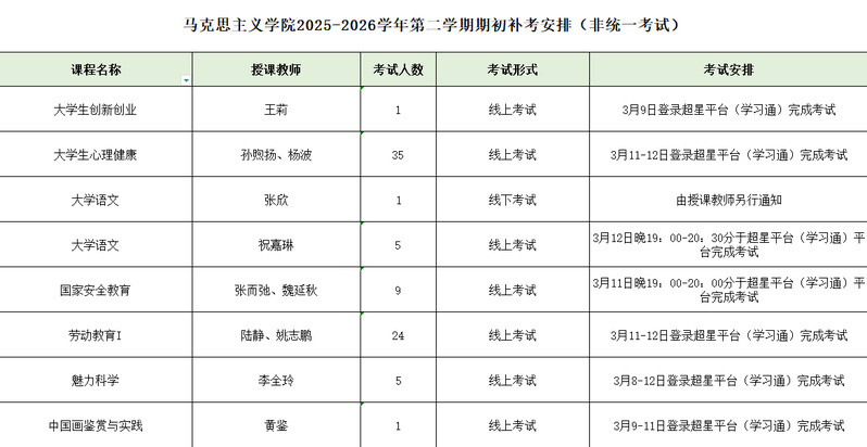 中国近现代史纲要、马克思主义基本原理 、思想道德与法治、毛泽东思想和中国特色社会主义理论体系概论 、习近平新时代中国特色社会主义思想概论和军事理论课程由学校统一安排补考,考生可自行登陆树维系统查看考补考信息。